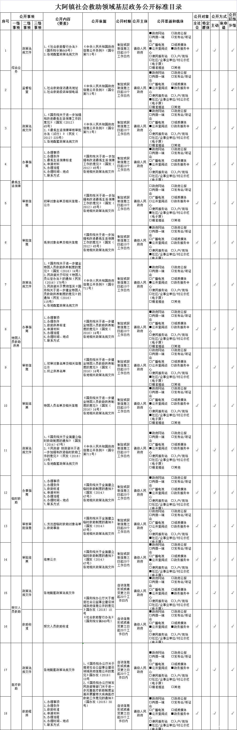 大阿镇社会救助领域基层政务公开标准目录